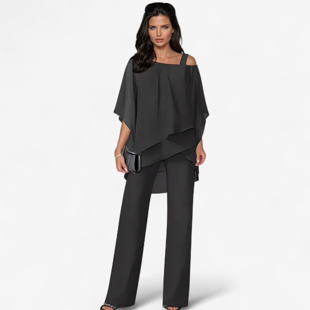 Tired of outfits that look good only once but don’t flatter in real life? The Arlene Two-Piece Set is designed to give you effortless sophistication without sacrificing comfort. The flowing layered top adds graceful movement, while the tailored trousers create a sleek, elongated silhouette. Perfect for formal evenings, parties, or daytime events, this set is the versatile solution for women who want to look elegant, feel confident, and stand out wherever they go.